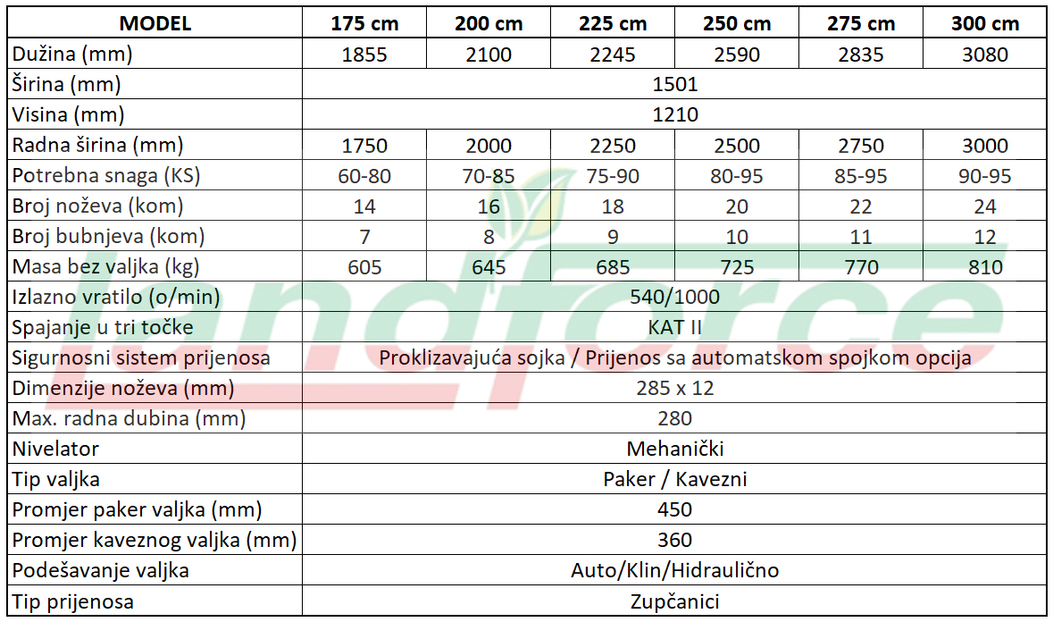 Roto drljače u izvedbama 175-300 cm radne širine.