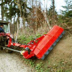 Patentirani dizajn dvostrukih šarki osigurava ravnomjeran i istodoban pomak i povišenje bočnog malčera kada se naiđe na prepreku. To omogućava siguran prolazak kroz prepreku. Vraćanje stroja u radni položaj osiguravaju se postavljenim opružnim oprugama.
