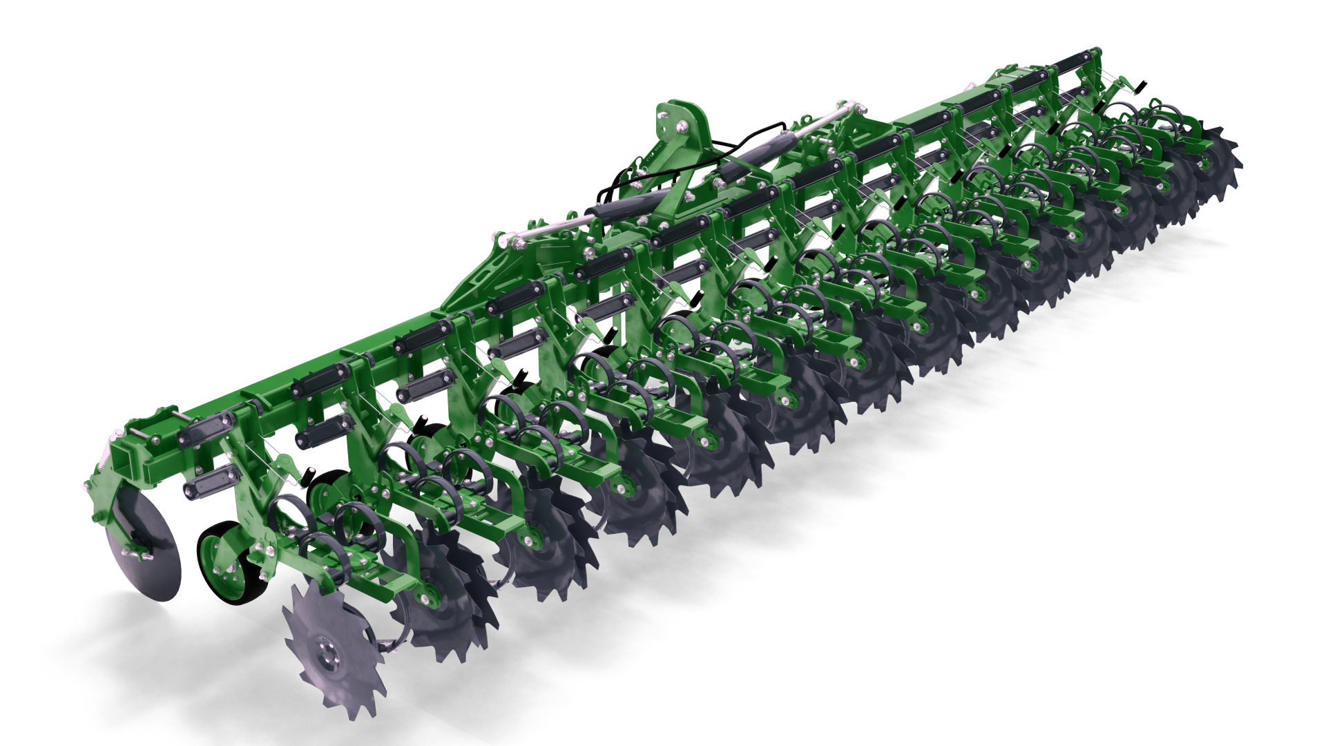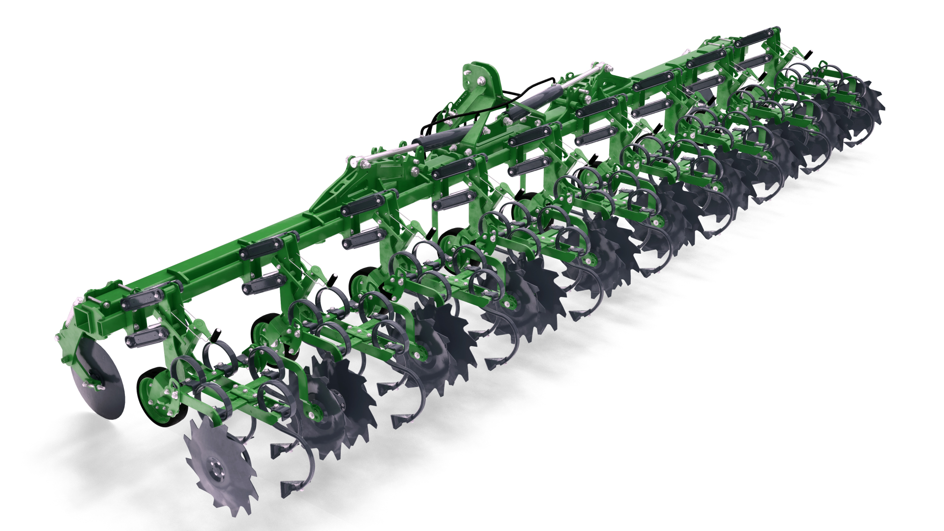 U kombinaciji sa velikim nazubljenim zaštitnim diskovima koji sprječavaju zatrpavanje i eventualno oštećenje korijena i stabla biljaka, što omogućuje obradu zemljišta i dok su usjevi mali, postiže se savršena preciznost u čišćenju korova bez mogućnosti oštećenja usjeva.
