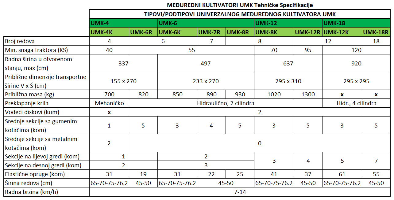 Optimalna radna brzina je 10-12 km/h. Konstrukcija kultivatora je takva da se i na neravnom zemljištu poštiže velika preciznost u pogledu praćenja redova.