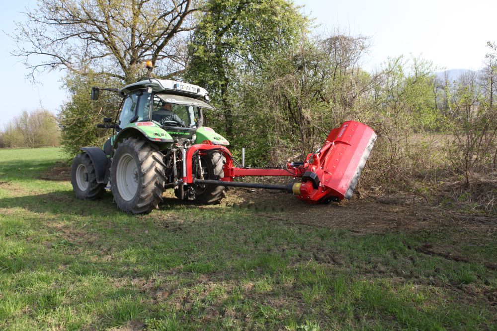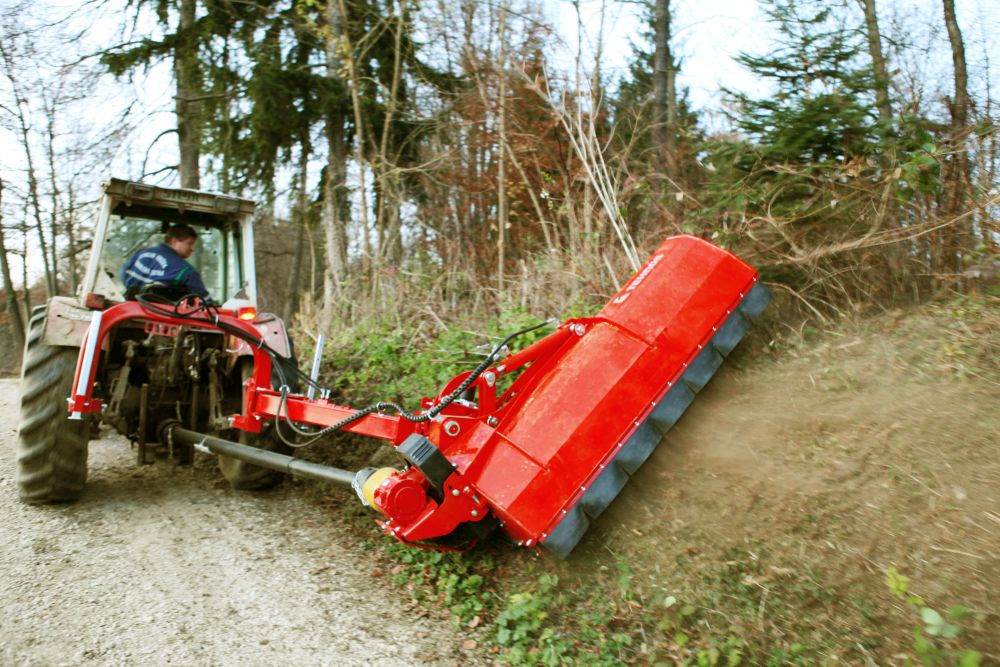 Patentirani dizajn dvostrukih šarki osigurava ravnomjeran i istodoban pomak i povišenje bočnog malčera kada se naiđe na prepreku. To omogućava siguran prolazak kroz prepreku. Vraćanje stroja u radni položaj osiguravaju se postavljenim opružnim oprugama.